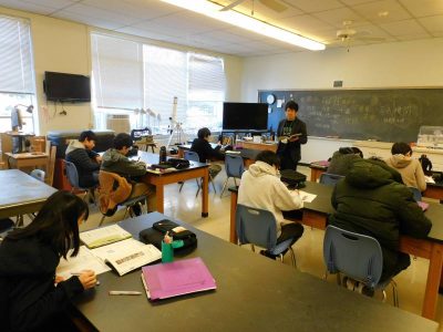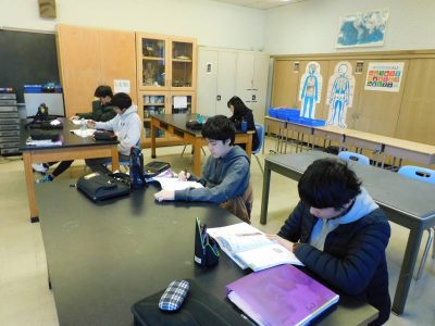 同じ時間9年生は、理科です。9年生もまとめとして、ワークブックに取り組んでいました。