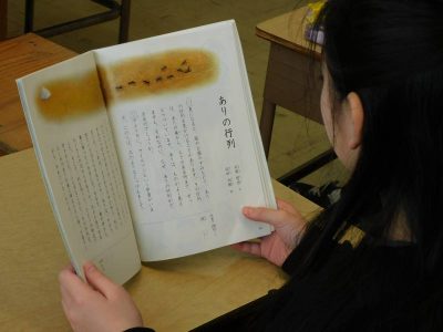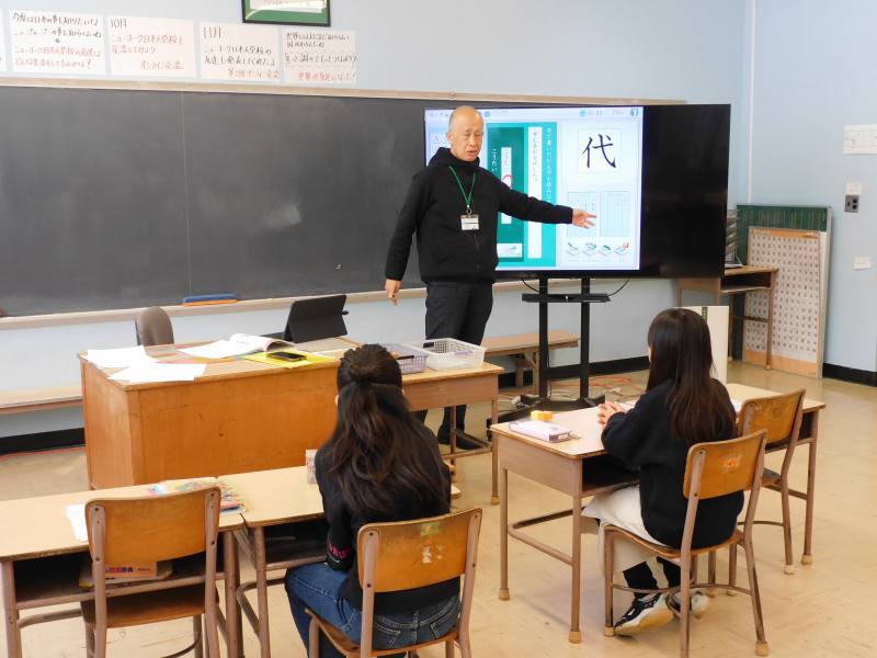3年生1時間目は、国語です。今日は最初に、教科書に出てくる漢字の練習を行いました。画面を見ながら、書き順に注意しながら学習しました。その後、教科書の音読をしました。