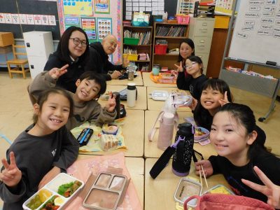 今日の“なかよしランチタイム”は、3年生教室にお邪魔しました。2年生も一緒にお弁当を食べました。今日はいろいろなおしゃべりの中で、委員会のことも話題になりました。日本の小学校では4年生又は5年生からはじまる委員会活動もNJ校では、2,3年生も含め、全員が参加しています。早くも来年度の希望する委員会の話まで出ていました。