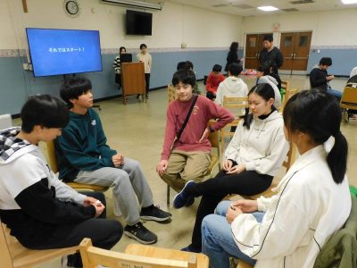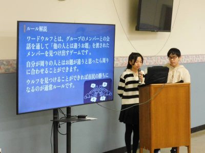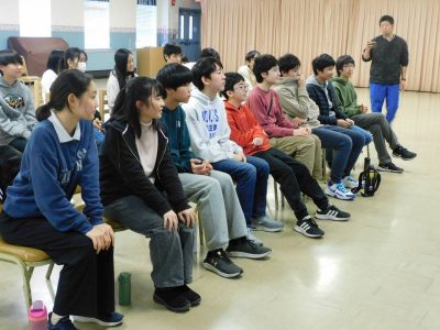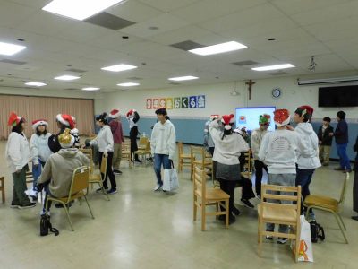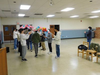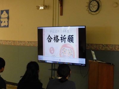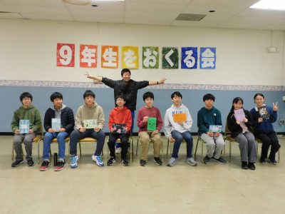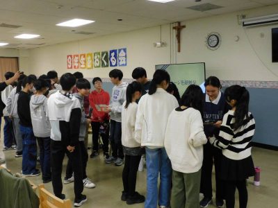 卒業後の進路決定を控えた9年生の多くは今後、受験のため日本に一時帰国します。そして、次回全員が揃うのは卒業式直前の予定です。そのため本日、少し早いですが、“9年生を送る会”がコナーズホールで行われました。ゲームでは、3学年が一緒になって様々なゲームを楽しみました。スライドでは、懐かしいNJ校での日々を振り返りました。在校生は、9年卒業生への感謝の気持ちや受験での健闘の祈りを伝えました。また、9年生からは一人ずつNJ校で過ごした日々の思い出や後輩へ感謝の気持ちなども披露されました。