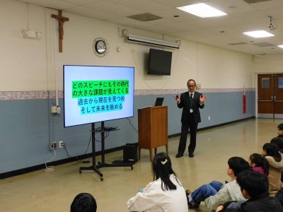 2時間はコナーズホールで始業式が行われました。私からは、私が冬休み中に訪れたゲティスバーグにまつわる話を紹介しました。また子供たちからは、3学期の努力目標がそれぞれ紹介されました。どの発表も具体的なめあてや目標達成への手順が示されており、とても頼もしく感じました。