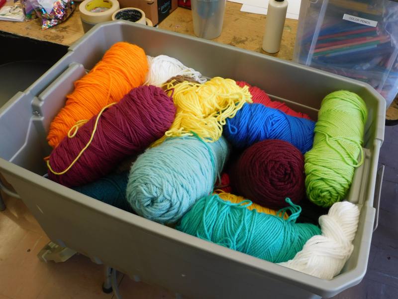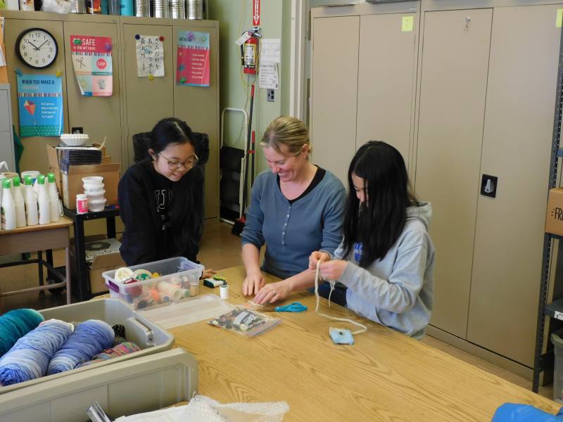 同じ時間5年生は、ARTです。今日は毛糸を使った作品作りに取り組んでいました。二人ともほぼ完成に近づいていました。