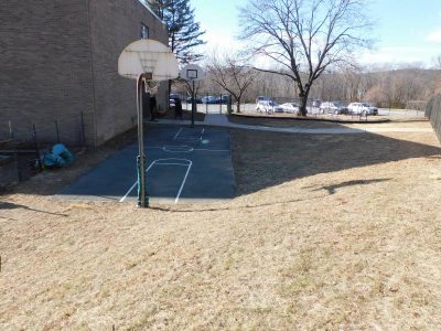 最近は寒い日が続いたり、9年生が受験のため一時帰国していたりするせいか、外遊びのメンバーが少なくなっています。今日の昼休みもバスケットコートは誰もおらず、ブランコ周辺で初等部数名が遊んでいるだけでした。