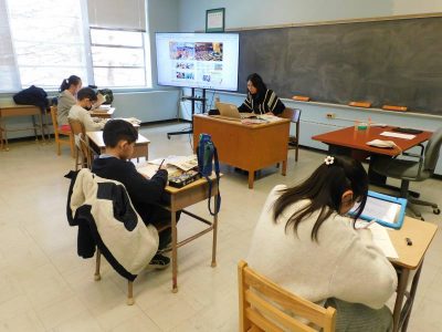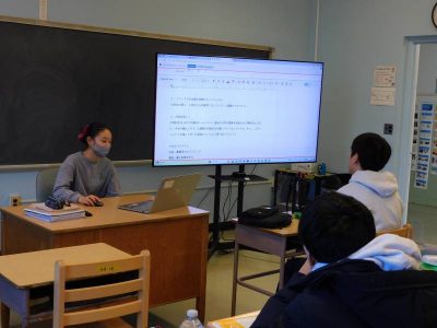 “起業”という言葉は今や一般社会でも定着し、その実現に向け努力されている方々も世界中にたくさんいらっしゃるはずです。そんな中、本日1時間目9年生は社会科の授業で、2名の生徒から自らの企業への思いが紹介されました。プレゼンを聞く前は、気をてらったユーモアあふれるものかと勝手に予想していました。しかし実際は全く異なり、かなり具体的で説得力があり、すぐにでも起業して欲しい内容ばかりでした。農業や伝統文化体験ができる“中高生向け国内ホームスティ”を扱う会社、“幼児や低学年を対象とした教育的要素を含むデジタルゲームのサブスクリプションサービスの展開”等極めて真剣な取り組みで正直驚きました。初期費用、期待される効果、社会的責任等様々な視点からその実現へ向けての取組が紹介され、9年生らしさを感じました。日本国内は遅い時間にもかかわらず、受験で一時帰国している生徒もオンラインで参加していました。