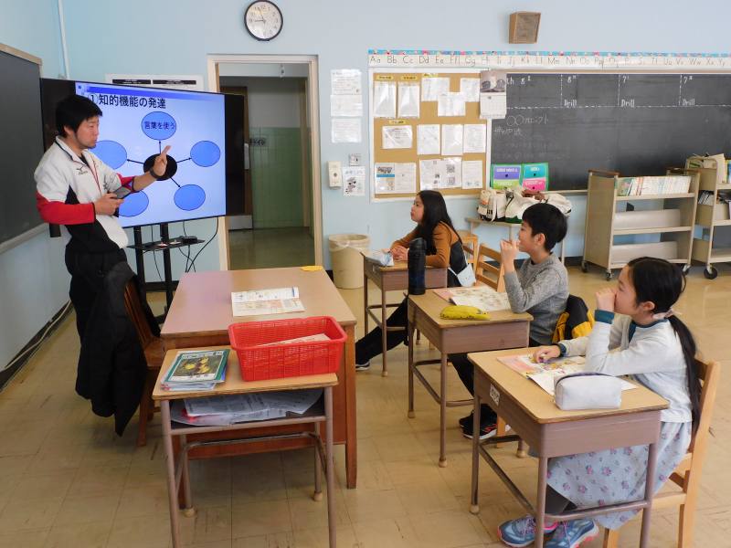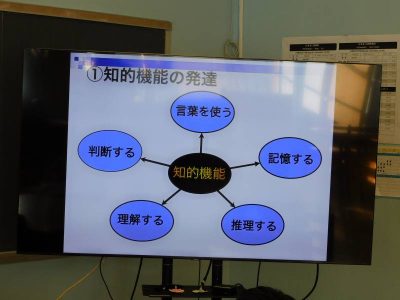 5年生1時間目は、保健です。今日は、心の発達がテーマです。知的機能の発達や感情についてスライドも使いながら学習していました。