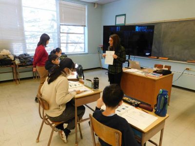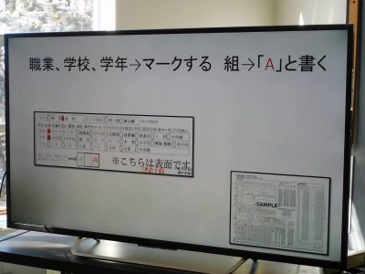 NJ校では年に3回、準会場として英検(実用英語技能検定)を実施しています。試験は土曜日か日曜日に実施され、普段の登校日とは流れが違うため、毎回必ず事前指導を行います。本日も昼休み、今週受験する児童生徒を対象にオリエンテーションが行われました。受験票の書き方練習や集合時間等を確認しました。多くの子供たちが今回の試験に向け準備してきたはずです。よい結果がでることを期待しています。