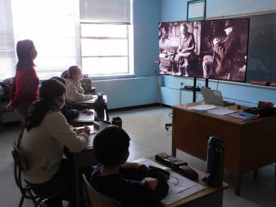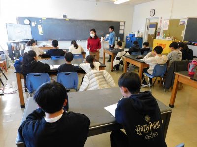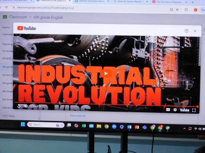 同じ時間6年生は、英語です。今日は、産業革命の変遷について学習していました。私が教室に入った時は、産業革命の歴史にかかわるビデオを見て、当時の様子を知るとともに個人テーマになるヒントを探していました。