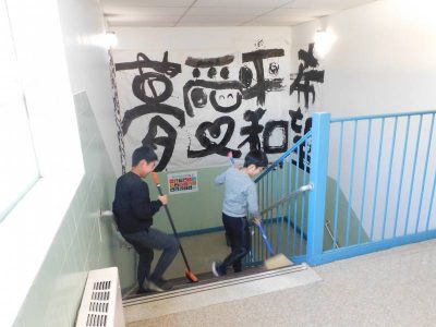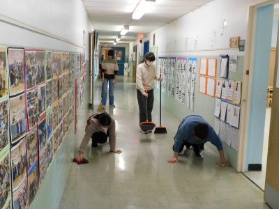 本日も7時間目は、縦割り清掃です。最初に自分の教室を掃除した後、縦割り班で特別教室、階段、廊下、コナーズホールなどをきれいにしました。どの児童生徒、先生方も一生懸命、清掃活動に取り組んでいました。