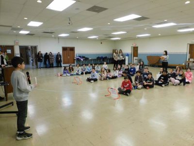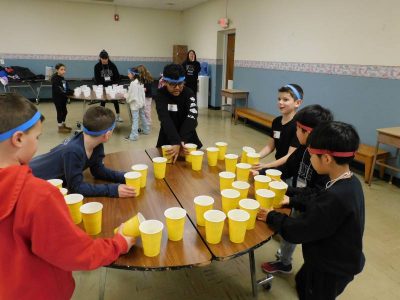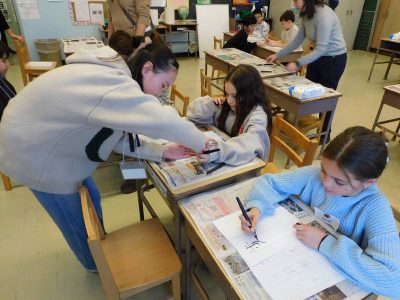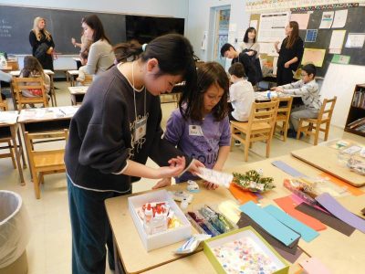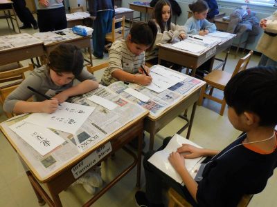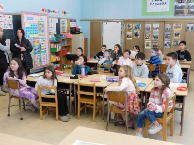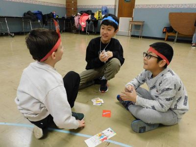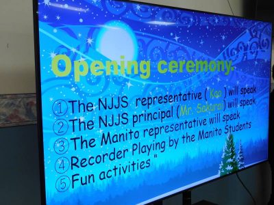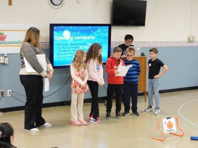 昨年11月、NJ校はマニトー校を訪問し、学校間交流を実施しました。今日は、マニトー校の子供たちが本校に来てくれました。NJ校の子供たちは、今日まで主に7時間目を使い、ゲームの進め方、オープニング・クロージングセレモニーの練習等しっかり準備してきました。 お互い約2か月ぶりの再会に最初は緊張気味でしたが、活動を通じてすぐ仲良くなりました。玉入れ、カップ積み立て、しおりづくり(筆ペンを使い自分の名前を漢字で書く)等日本的な活動を通じて、マニトー校の児童たちも楽しみながら日本文化を感じ取ってくれたはずです。2時間ほどの滞在でしたが、互いに素敵な時間を過ごすことができました。今後も交流を続け、将来は一人一人が日米の懸け橋になることを期待します。