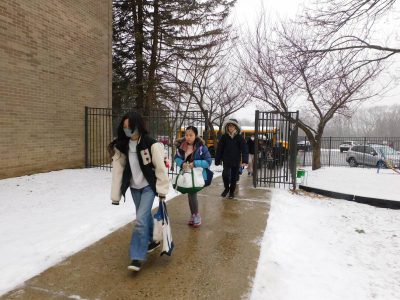 昨日から本日の降雪予報が出され、交通機関への影響が心配されたため、今日は2時間遅れの始業となりました。雪も朝にはすでにみぞれ状態でしたが、子供たちが登校してくる頃は雨に変わっていました。通常とは違う時間帯でしたが、子供たちはいつも通り元気に登校してきました。