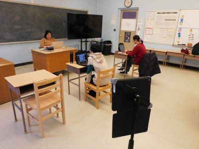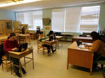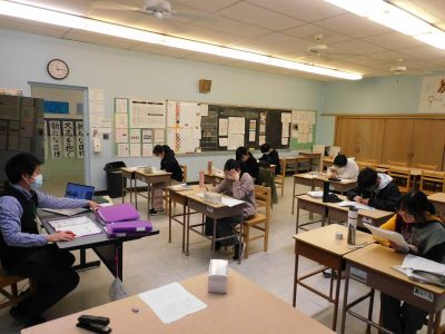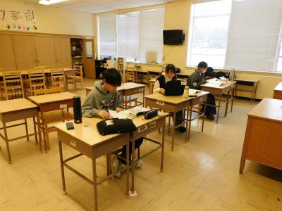 中等部7,8年生は、本日から学年末テストです。3時間目は、4時間目に予定されている教科の最終調整を行っていました。