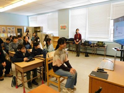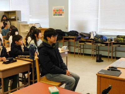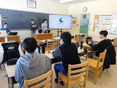 8年生は、社会科です。私が教室に入った時は、1時間目に実施したJICAオンライン出前授業の振り返りを行っていました。