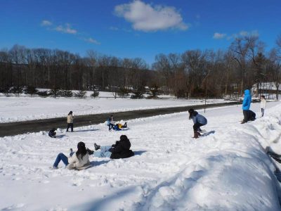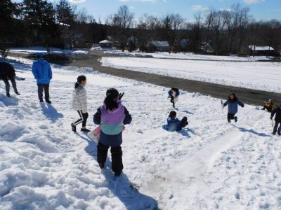 メイプルタイムや昼休みに初等部児童たちは、たっぷり降った雪の中、雪遊びを楽しんでいました。今シーズンは例年になく、長く雪に親しむことができています。