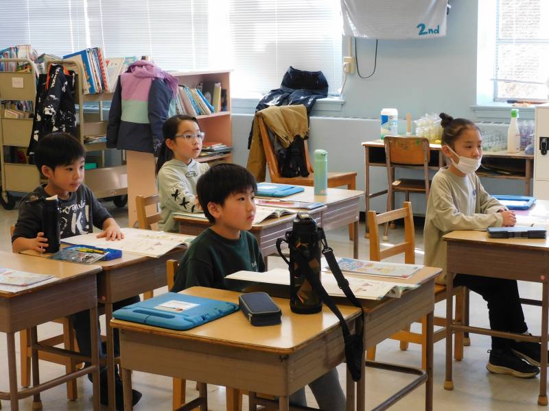 2年生5時間目は、算数です。今日は、教科書のピザの絵や折り紙を使って、「〇分のいくつ」のように何かを分けた時の表し方を学習しました。
