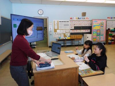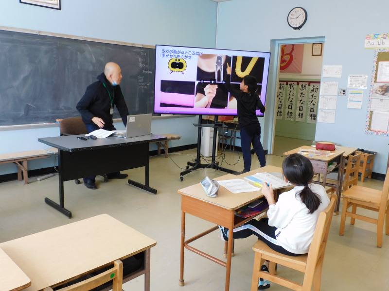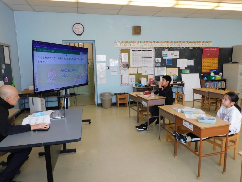 同じ時間4年生は、理科です。今日は、天気や人の体(筋肉や関節)の復習問題に取り組んでいました。