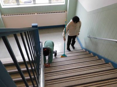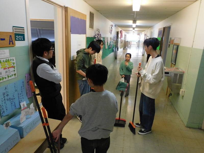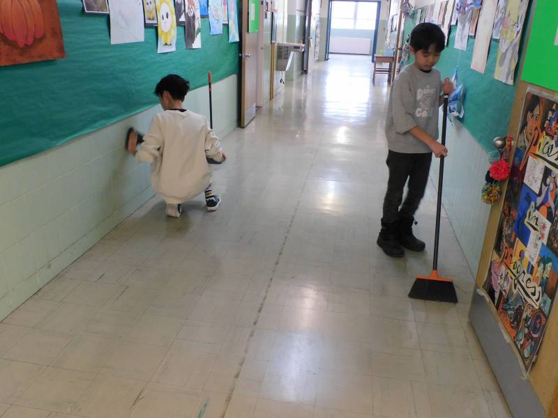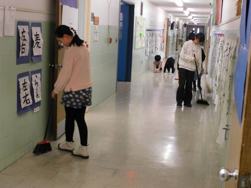 7時間目は、縦割り清掃です。各班は最初に、掃除の手順を確認します。その後、グループ毎に割り当てを確認しながら一生懸命掃除していきました。今年度はかなりの回数をこなしましたが、次回がいよいよ最終回となります。今日も初等部・中等部の混合チームが、割り当て箇所を一生懸命頑張っていました。