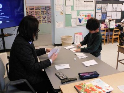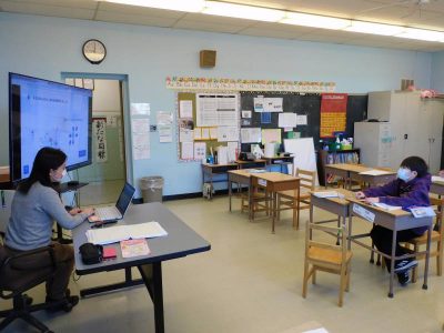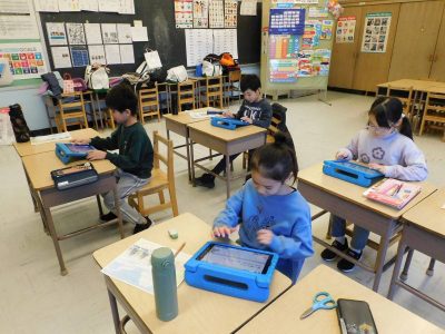 4年生も国語です。風邪でお休みしていた児童は、担任の先生と別メニューで授業を受けていました。