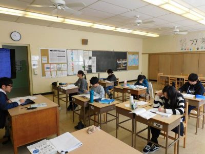 NJ校の委員会は、初等部・中等部全員が加入し、さまざまな取り組みを日々実施しています。本日は、生活環境委員による「教室環境コンテスト」が実施されました。NJ校には、日常的な掃除の時間はありません。今週実施した縦割り清掃、学期末の大掃除が唯一の美化活動です。そこで今回、生活環境委員会は、“教室環境”にスポットを当てたコンテストを企画しました。黒板、床、窓際などのチェックポイントを明示し、確認していきます。どのような結果になるのか楽しみです。