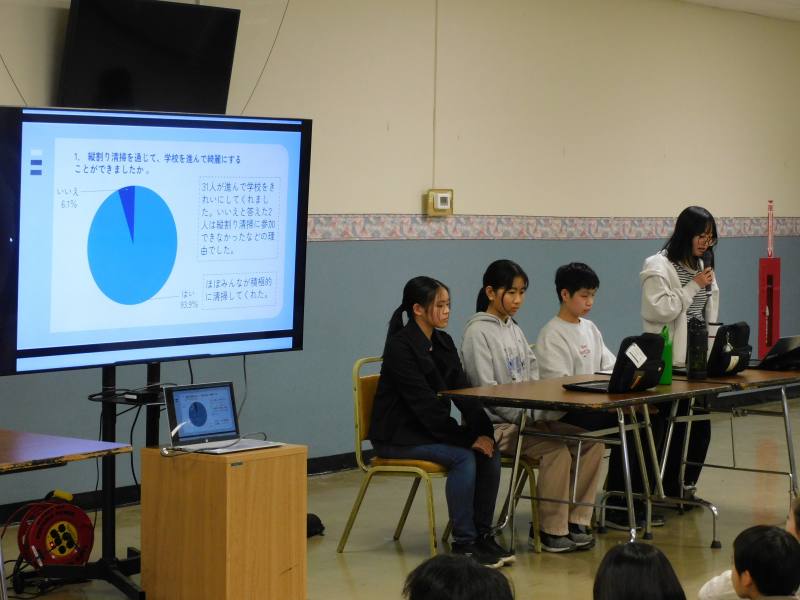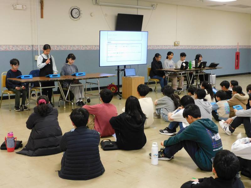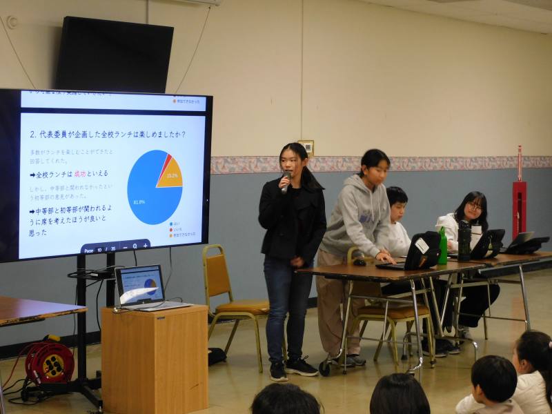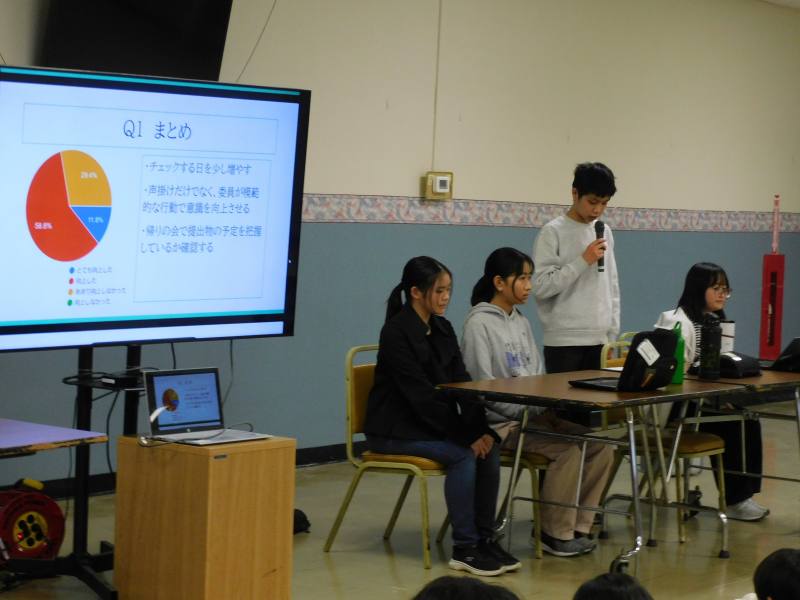 本日6時間目、児童生徒集会が行われました。今回はこれまでの委員会活動を振り返り、成果や課題を整理した後、次年度への申し送り事項等を披露する会でした。新たな取り組みをスタートしたり、伝統を引き継いできたりと活動内容は多岐にわたります。今回の発表(報告)を受けて次年度は、さらに工夫を凝らしたNJ校だからできる取組が続くことを祈っています。