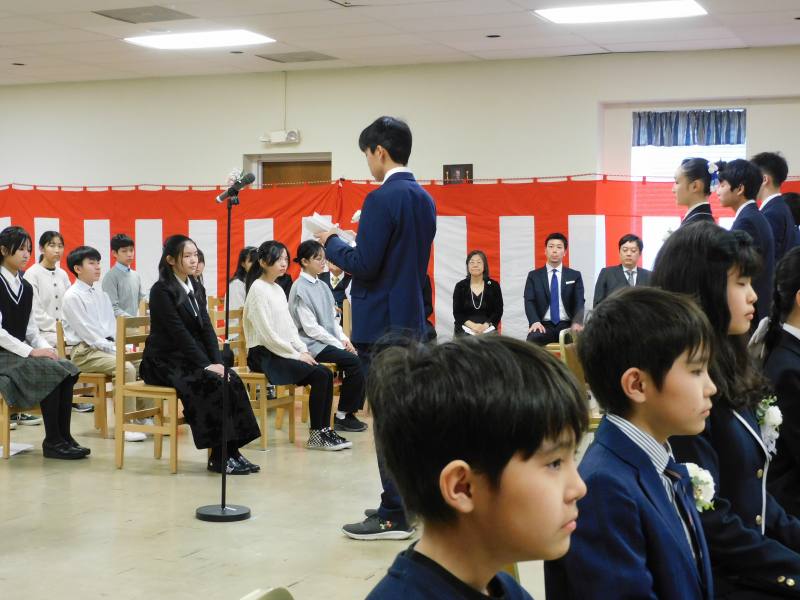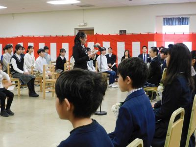 本日、初等部第31回、中等部第26回卒業式が行われました。在校生は2週間に及ぶ練習期間内で、礼法、合唱、呼びかけを練習してきました。卒業生は、入退場、証書授与、合唱練習に加え、卒業制作にも携わってきました。特に9年生は3学期、ほとんどの生徒が受験で一時帰国をしていたため全員揃っての式練習は昨日のみでした。そのような中迎えた今日の卒業式。卒業生14名はNJ校を巣立つ寂しさをかみしめつつも、気持ちは新たな未来へ向かっているはずです。私たちはそんな彼らをNJファミリーとして、しっかり応援してきます。