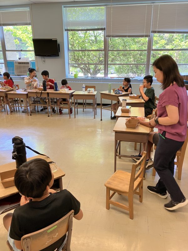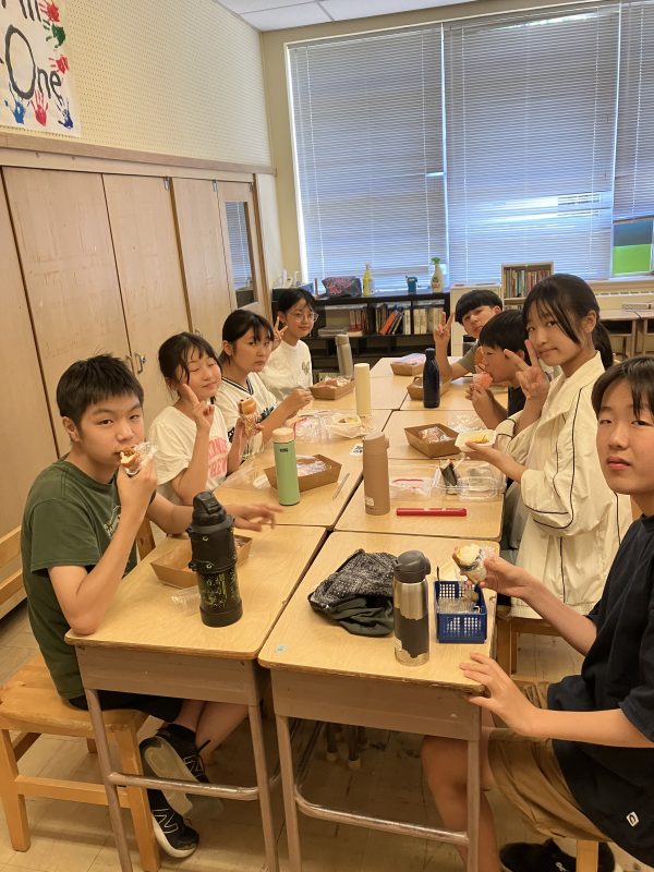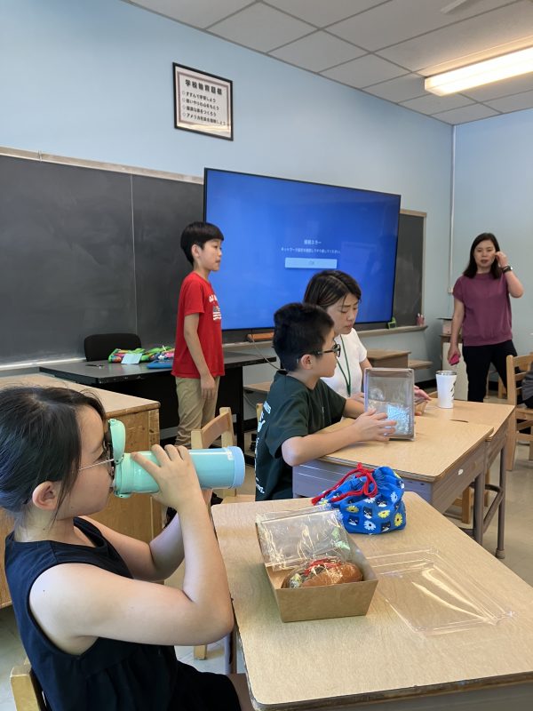 本日はTPOランチをいただきました。事前に希望した「パンAセット」「パンBセット」「おにぎりセット」の中から1つを選んで食べました。初等部は全員が4年生教室に集まって食事し、途中クイズ大会もありました。中等部は7・8・9学年が縦割りで3つのグループに分かれ楽しそうに食べていました。子どもたちは、毎日、家族の方にお弁当を作ってもらっていることに感謝しながらいただきました。