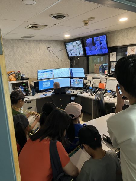 はじめにオークランド警察署に行き、通信指令室や留置所までも案内していただきました。以前NJ校が見学した時の記事も飾ってくれていました。パトカーの説明も丁寧にしていただき、5人の子どもたちからは英語でたくさんの質問がありました。リストバンドをお土産にいただきました。