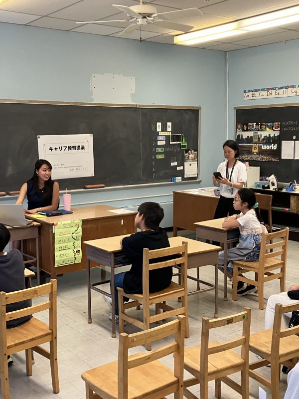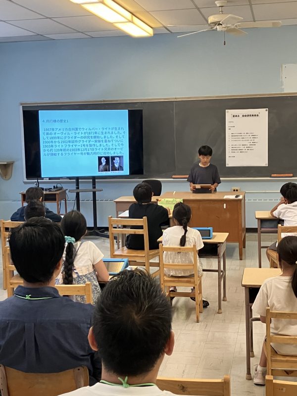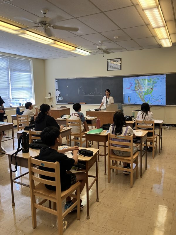 8月16日(土)2,3,4時間目を公開し保護者の皆様に授業を参観していただきました。今回は、NJの学校運営委員会の皆様にもお声がけし、学校の様子をご覧いただきました。3時間目は3つの学年ブロックに分かれて夏休みに取り組んだ「自由研究発表」を行いました。それぞれ何を研究しようとしたかその着眼点がgood jobでした。4時間目は9年生教室では第2回進路説明会が、6年生教室では石沼先生の教え子で高校時代からアメリカに渡り日本の企業である「獺祭Blue」に就職された髙松様にお話をいただきました。隔年で行ったり来たりしているNY日本人学校の先生方にも授業を見ていただき、午後は合同研修会をもちました。2学期始まってすぐの1日でしたが、子どもたちの頑張りもたくさん見られ有意義に過ごすことができました。皆様、ご協力ありがとうございました。