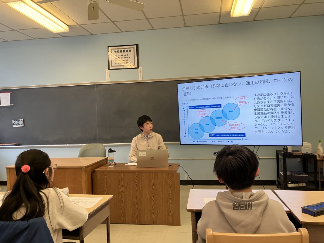 卒業生に向けた金融教育授業2026年2月24日2026年2月25日 令和8年2月18日(水)金融教育を学ぶ学生が来校し、6・9年生に社会科の授業をしてくれました。お金の運用の仕方やそのリスクなどについて話してくれ、大変勉強になりました。