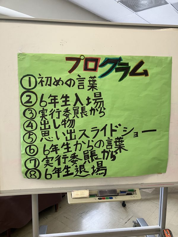 令和8年2月24日(火)初等部で「6年生を送る会」が開かれました。今まで初等部を引っ張ってきてくれた3人の6年生に、1年生から5年生が感謝の気持ちを込めて行われました。各学年から出し物や作製したプレゼントの贈呈があり、6年生は嬉しそうでした。5年生がよくまとめてくれていました。1週間後は卒業式となります。ここのところ雪がよく降りますが、みんな元気でいましょうね。