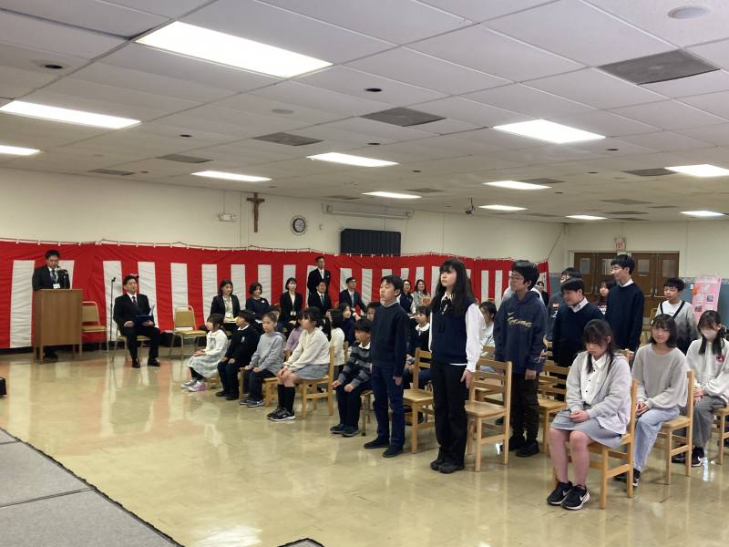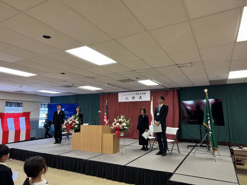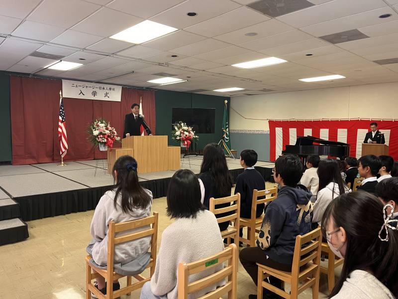 令和8年4月9日(木)あたたかな春のよき日の午後にニュージャージー日本人学校の着任式・始業式・入学式が行われました。着任式では新たな4名の先生方から挨拶をいただきました。始業式では2年生から6年生、8・9年生がそれぞれ進級し担任からの呼名に大きな声で返事をしていました。その後の入学式においては、1年生が2名、7年生が6名新しい仲間に加わってくれました。すぐにみんなが仲良くなるのがNJ校です。みんなで素敵な学校を作っていきましょう。