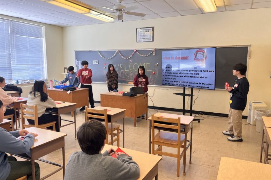 令和8年2月5日(木)国連国際学校(UNIS)の日本語を学ぶ30人ほどの生徒が教師4人と来校し交流を深めました。本校の生徒が書道、折り紙、剣道の3班に分かれ、リードしながらUNISの生徒にそれぞれの日本の文化に触れてもら… 続きを読む »中等部交流会 国連国際学校来校