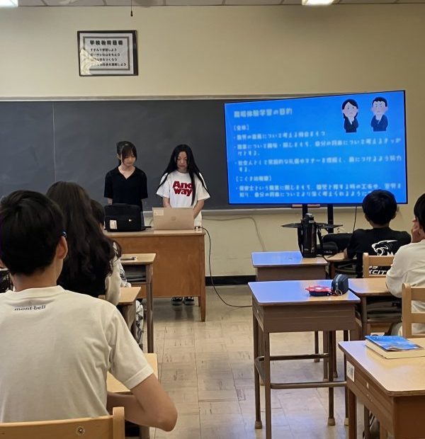 7月10日(木)1時間目、8年生が職場体験したことをまとめ、来年度行くことになる7年生に向けて報告会を行ってくれました。図書館組と幼稚園組、それぞれに行く前と後の気持ちの違いや仕事の大変さ苦労、そして後輩へのメッセージな… 続きを読む »8年生 職場体験報告会