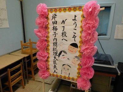 本日午後、NJ校に岸田裕子内閣総理大臣夫人、山﨑裕子国連大使夫人がお見えになりました。御来校後、児童生徒は最初に昼食をご一緒させていただきました。子供たちはいつもと違う座席や雰囲気にかなり緊張気味でしたが、楽しくお弁当を… 続きを読む »大きなよろこび~岸田総理夫人御来校~
